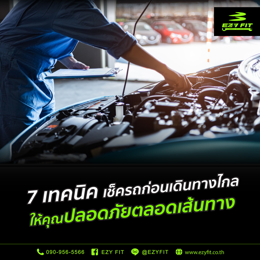 และนี่ก็คือ 7 เทคนิคเช็ครถก่อนเดินทางไกลที่ EZY FIT ได้รวบรวมมาแบ่งปันกัน สำหรับคนที่มีแพลนกำลังจะเดินทางในเร็ว ๆ นี้ก็อย่าลืมหาเวลาไปตรวจเช็คสภาพรถยนต์ของคุณในเบื้องต้น และหากมีระบบใดที่ต้องการซ่อมแซมก็ควรจะรีบนำเข้าศูนย์บริการก่อนเดินทางให้เรียบร้อย เพื่อความปลอดภัยและความราบรื่นตลอดการเดินทาง และถ้าหากคุณต้องการใช้บริการเปลี่ยนยางรถ เปลี่ยนน้ำมันเครื่อง หรือล้างแอร์นอกสถานที่ ก็อย่าลืมนึกถึง EZY FIT พิเศษสำหรับลูกค้าที่ใช้บริการเปลี่ยนยาง รับฟรี บริการตรวจสภาพรถยนต์ 25 รายการ ตรวจให้ถึงที่บ้าน สำหรับผู้ที่สนใจ หรือต้องการสอบถามข้อมูลเกี่ยวกับบริการอื่น ๆ สามารถติดต่อสอบถามได้เลยที่เบอร์โทรศัพท์ 090-956-5566 หรือ Line OA @EZYFIT แอดได้เลย ไม่ต้องรอ!