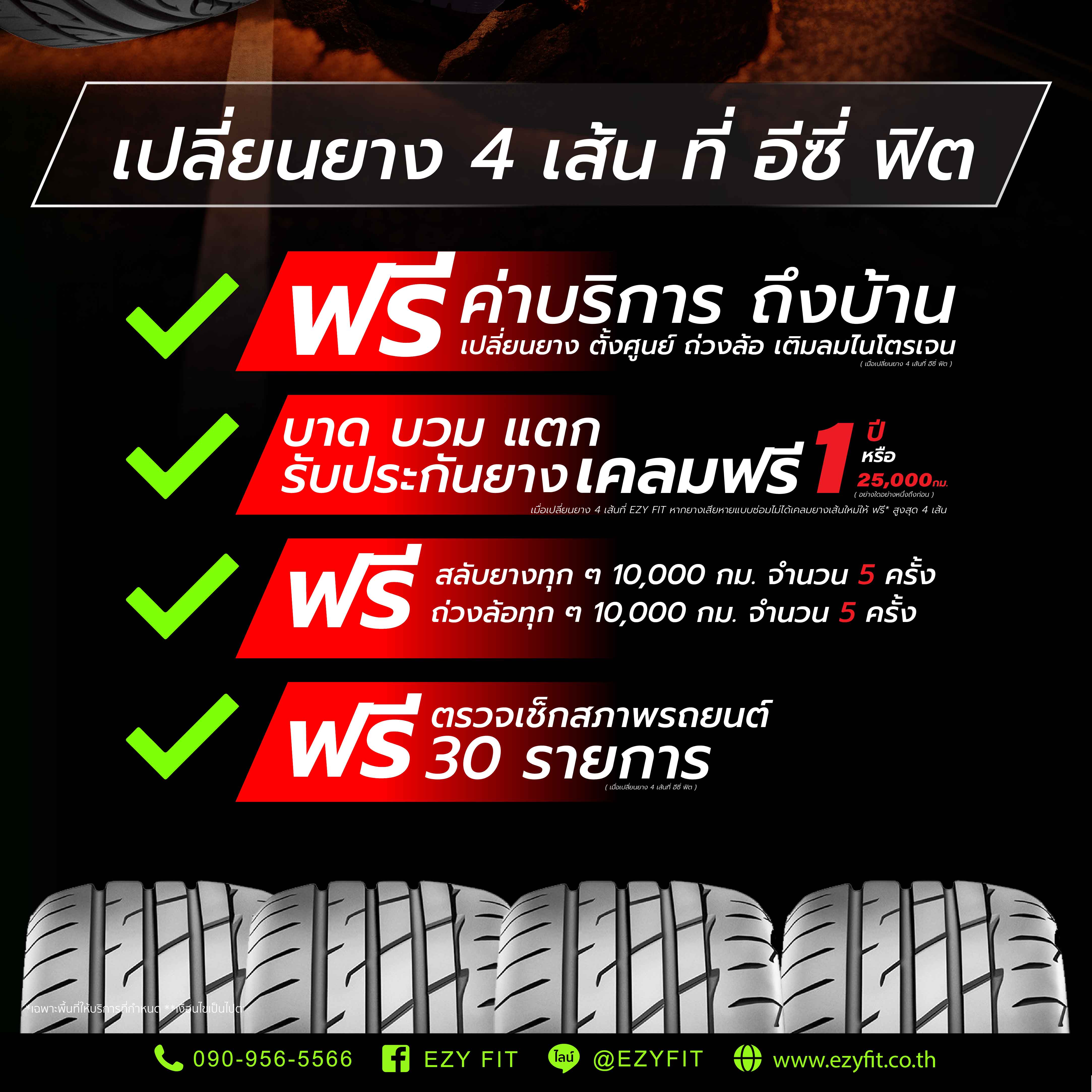 สลับยางฟรี ทุกๆ 10,000 กม. จำนวน 5 ครั้ง