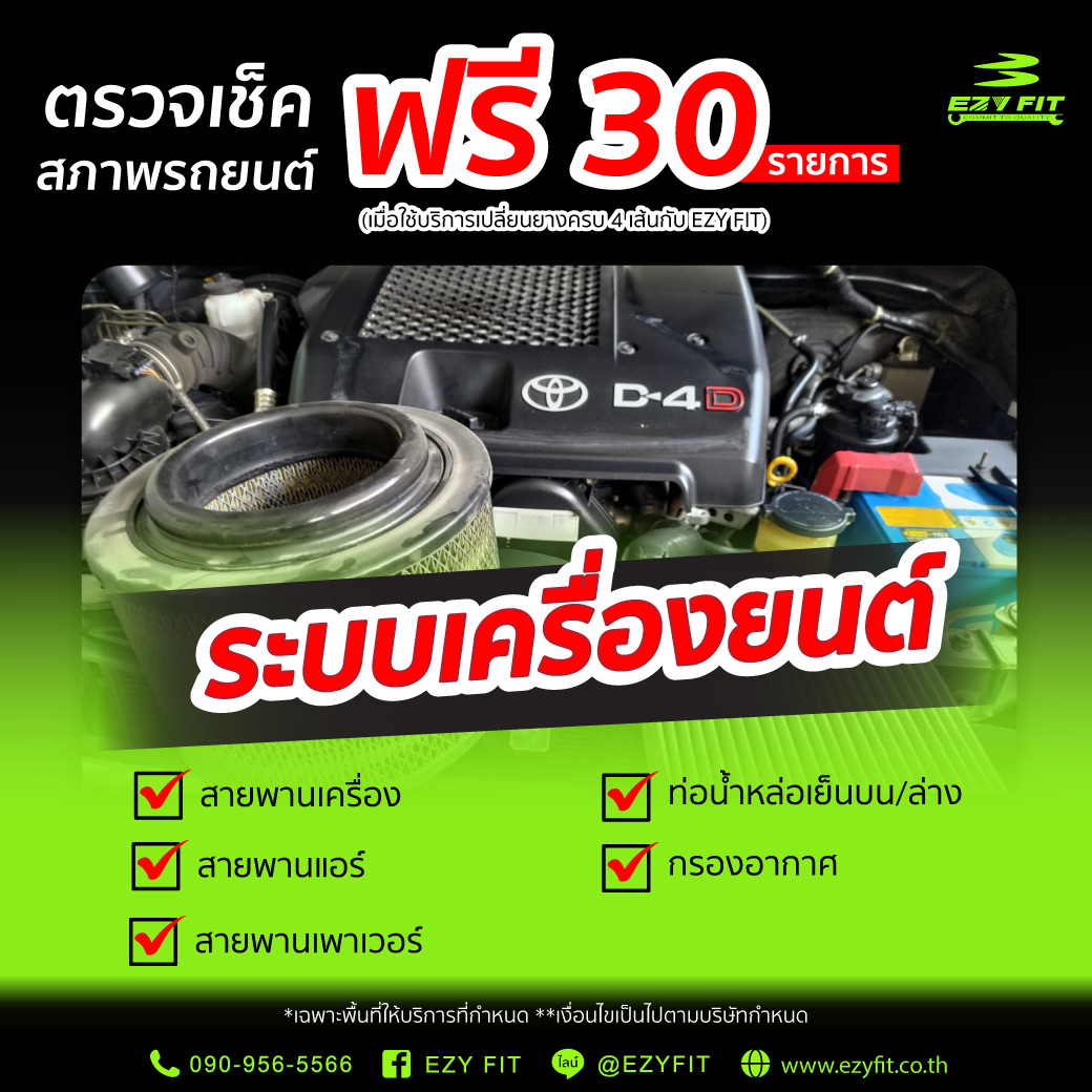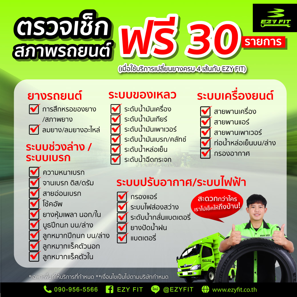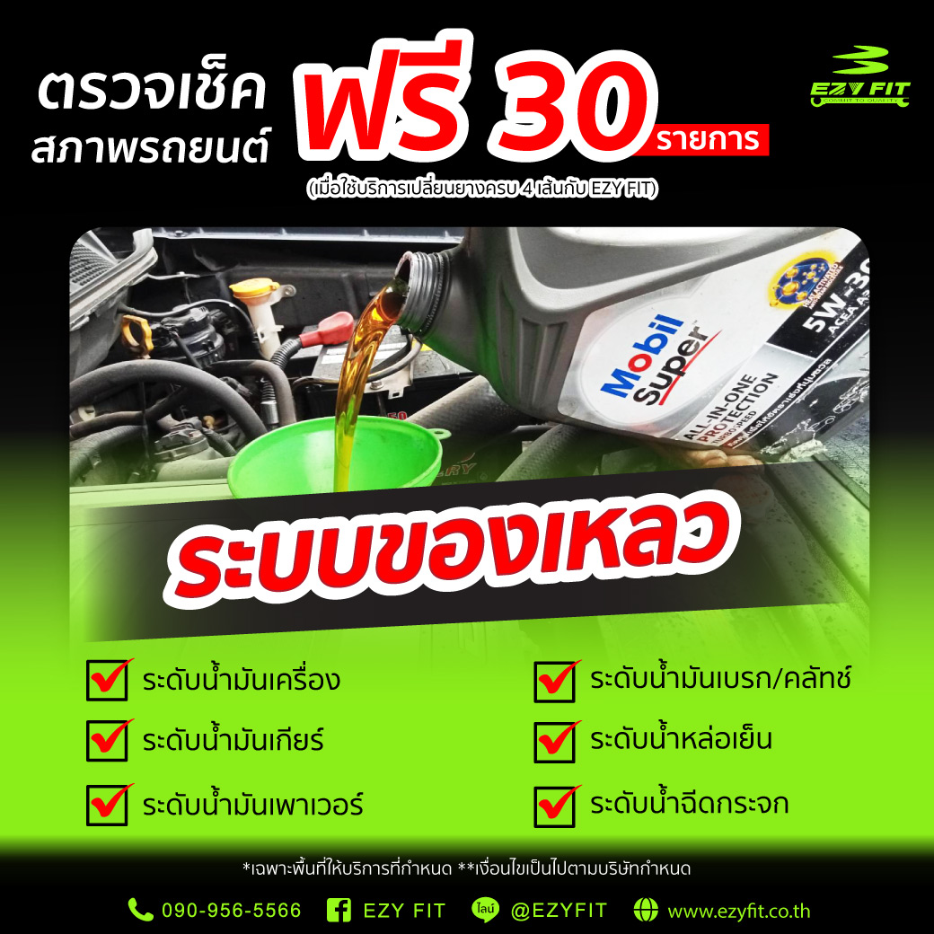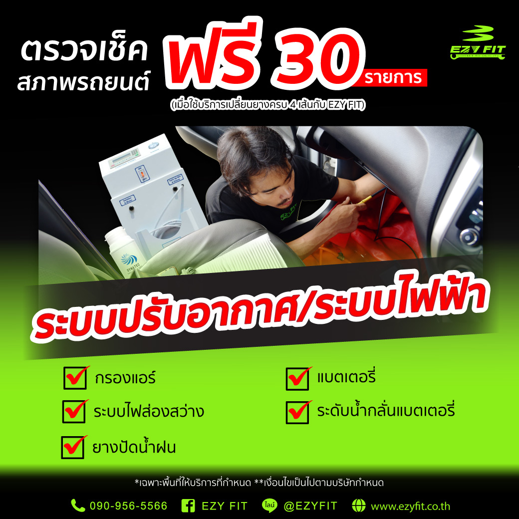 และความราบรื่นตลอดทั้งเส้นทาง เปลี่ยนยางกับอีซี่ ฟิตนอกจากได้ตรวจเช็คสภาพรถยนต์ 30 รายการแล้วยังได้รับบริการอื่นๆอีกมากมาย