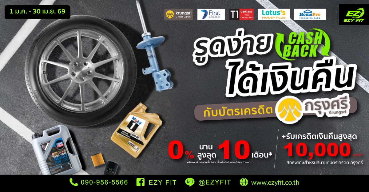 💁♀️ โปรโมชั่น "รูดง่าย ได้เงินคืน" สิทธิพิเศษสำหรับลูกค้าที่ซื้อสินค้าและบริการกับอีซี่ ฟิตโดยใช้จ่ายผ่านบัตรเครดิตกรุงศรี ( *กรุณาตรวจสอบหน้าบัตรก่อนใช้สิทธิพิเศษ)