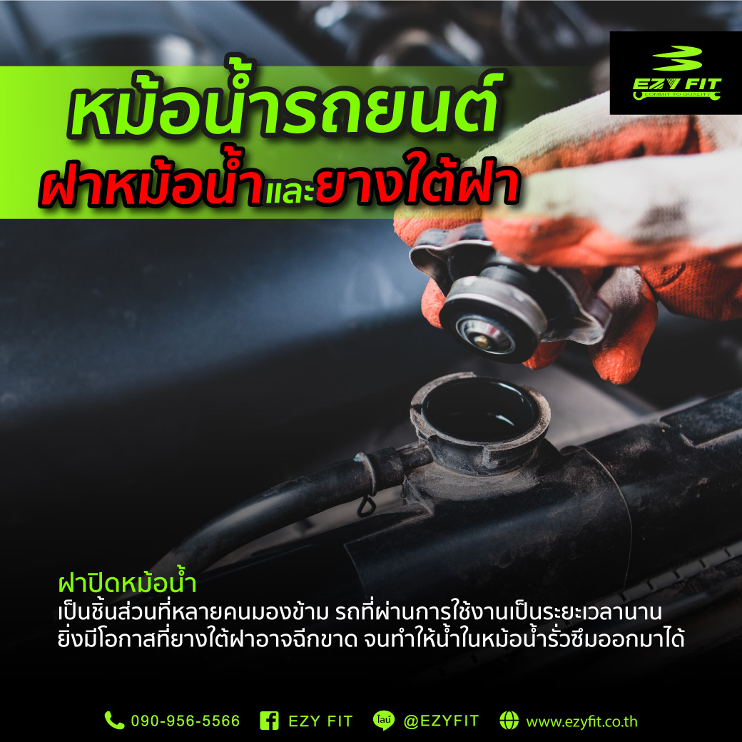 ฝาปิดหม้อน้ำ เป็นชิ้นส่วนที่หลายคนมองข้าม รถที่ผ่านการใช้งานเป็นระยะเวลานาน ยิ่งมีโอกาสมากที่ยางใต้ฝาจะฉีกขาด ซึ่งจะทำให้หม้อน้ำรั่วซึมและทำให้การควบคุมแรงดันผิดปกติ เครื่องยนต์เกิดความร้อนสูง และเกิดการเสียหายกับชื้นส่วนอื่นๆ ได้