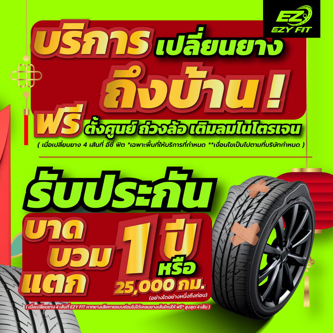 🏠 ฟรีค่าบริการ เปลี่ยนยาง ตั้งศูนย์ ถ่วงล้อ เติมลมไนโตรเจน ถึงหน้าบ้านคุณ (เมื่อซื้อยางครบ 4 เส้น)