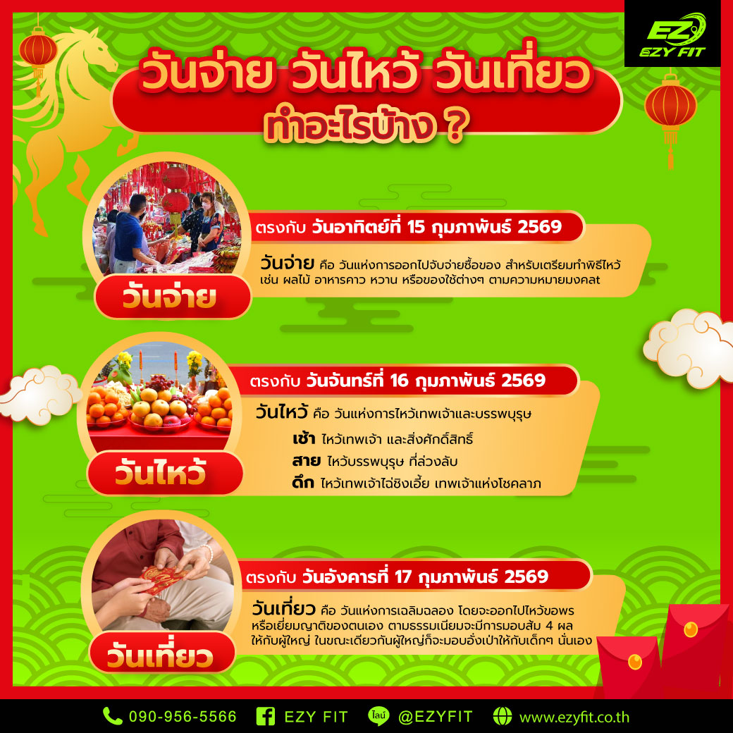 🧧💰 วันจ่าย ตรงกับ วันอาทิตย์ที่ 15 กุมภาพันธ์ 2569 คือ วันที่ชาวไทยเชื้อสายจีนออกมาจับจ่ายซื้อของ เช่น ผลไม้ อาหารมงคลคาว-หวาน เครื่องเซ่นไหว้ต่างๆ