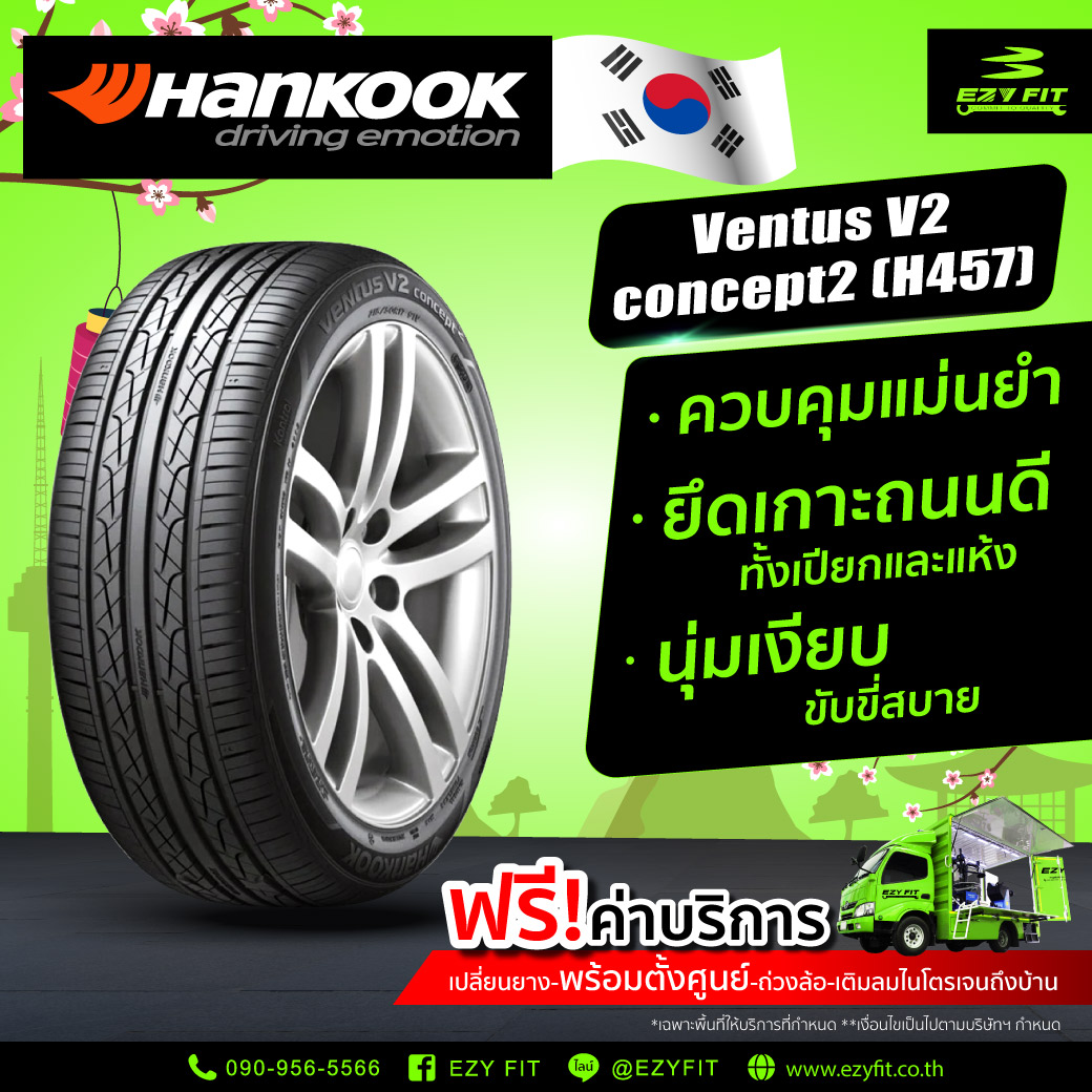 Hankook VENTUS V2 Concept2 (H457) ยางสำหรับยนต์นั่งส่วนบุคคล ที่ออกแบบให้รองรับทุกสไตล์การขับขี่