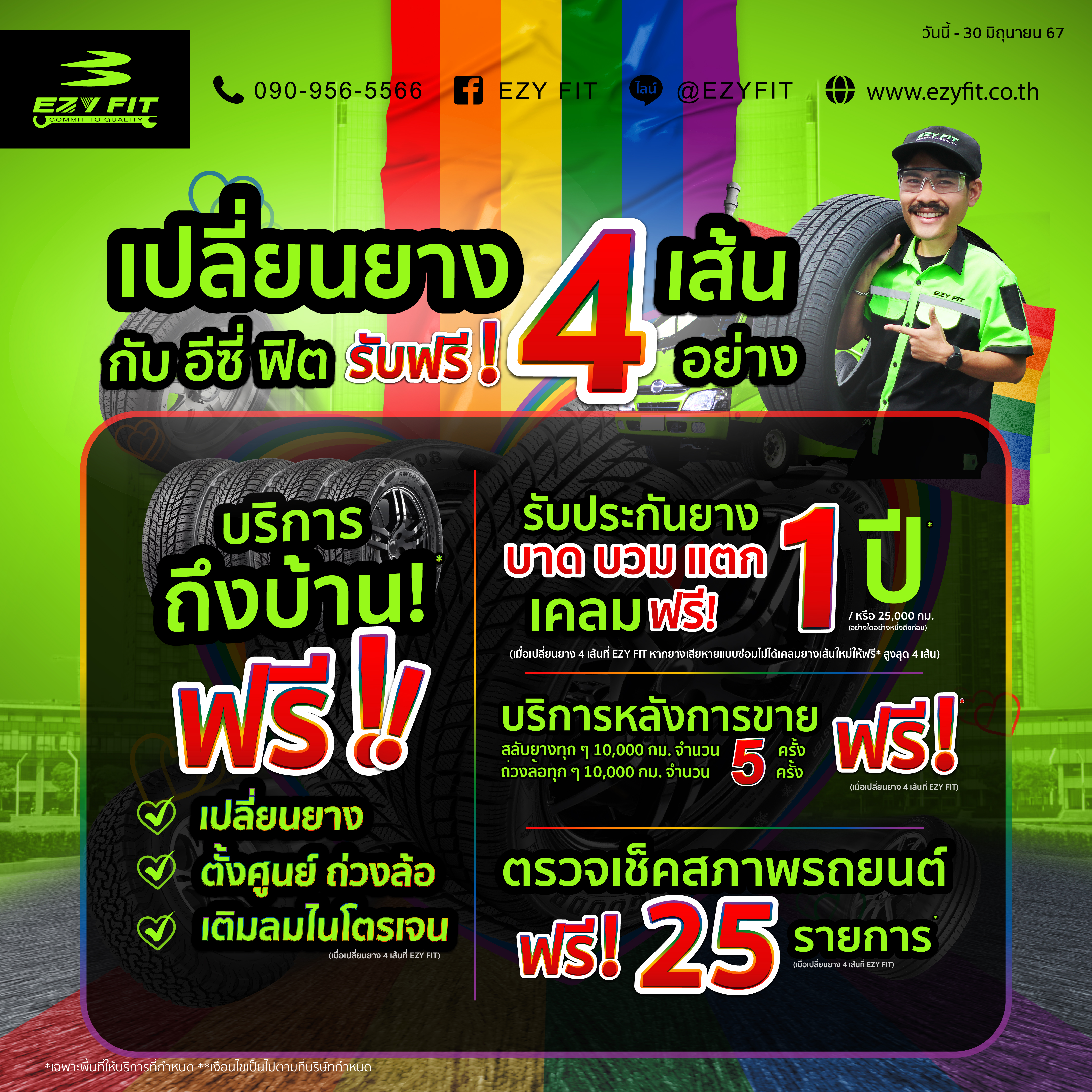 💚 ฟรีค่าบริการ เปลี่ยนยาง ตั้งศูนย์ ถ่วงล้อ เติมลมไนโตรเจน ถึงหน้าบ้านคุณ (เมื่อซื้อยางครบ 4 เส้น)