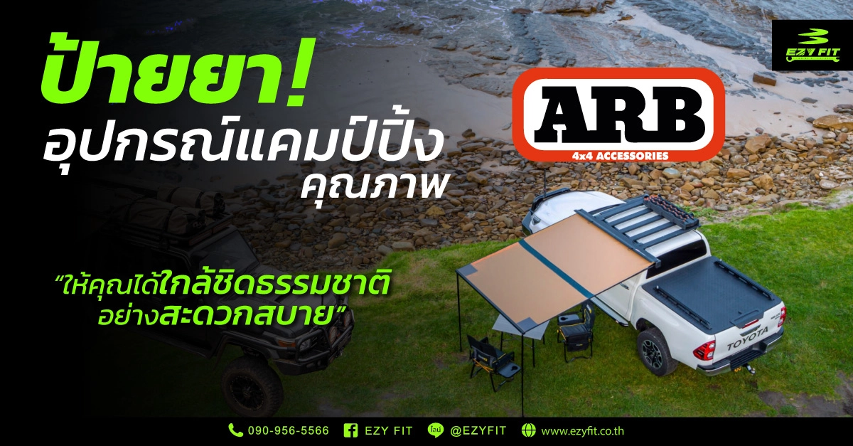 อีซี่ ฟิต ขอป้ายยาอุปกรณ์แคมป์ปิ้งคุณภาพดีแบรนด์ “ARB” จากประเทศออสเตรเลีย มีสินค้าให้เลือกหลาย อาทิเช่น เต็นท์หลังคารถ กันสาด ห้องอเนกประสงค์ โต๊ะ-เก้าอี้แคมป์ปิ้ง