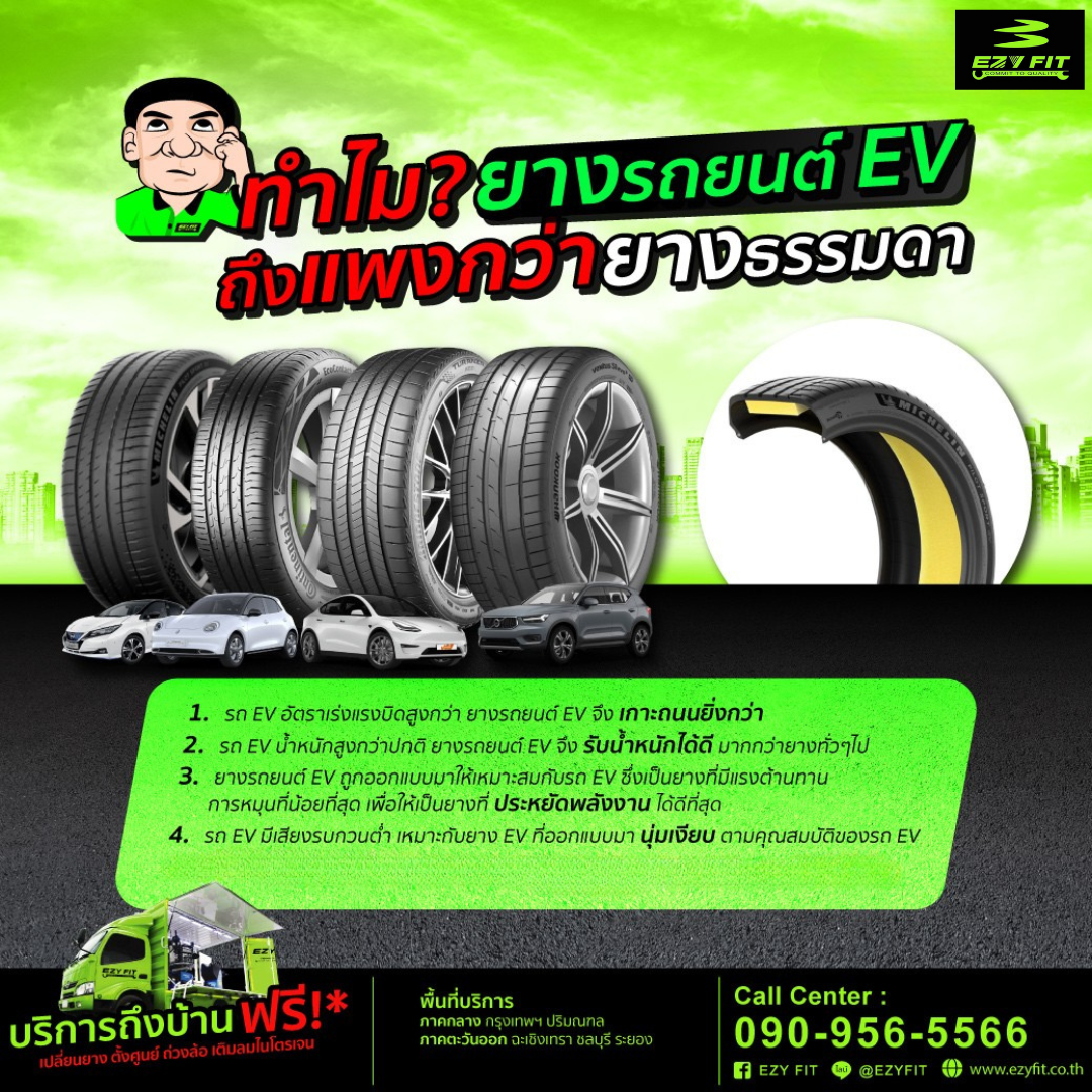 ประเภทของรถและการขับขี่ของเรา การที่เราขับขี่รถยนต์ไฟฟ้า EV แนะนำว่าควรใช้ยางที่ออกแบบมาสำหรับยางรถยนต์ไฟฟ้าโดยเฉพาะเพื่อให้ยางสามารถรองรับสมรรถนะในด้านต่างๆของรถ