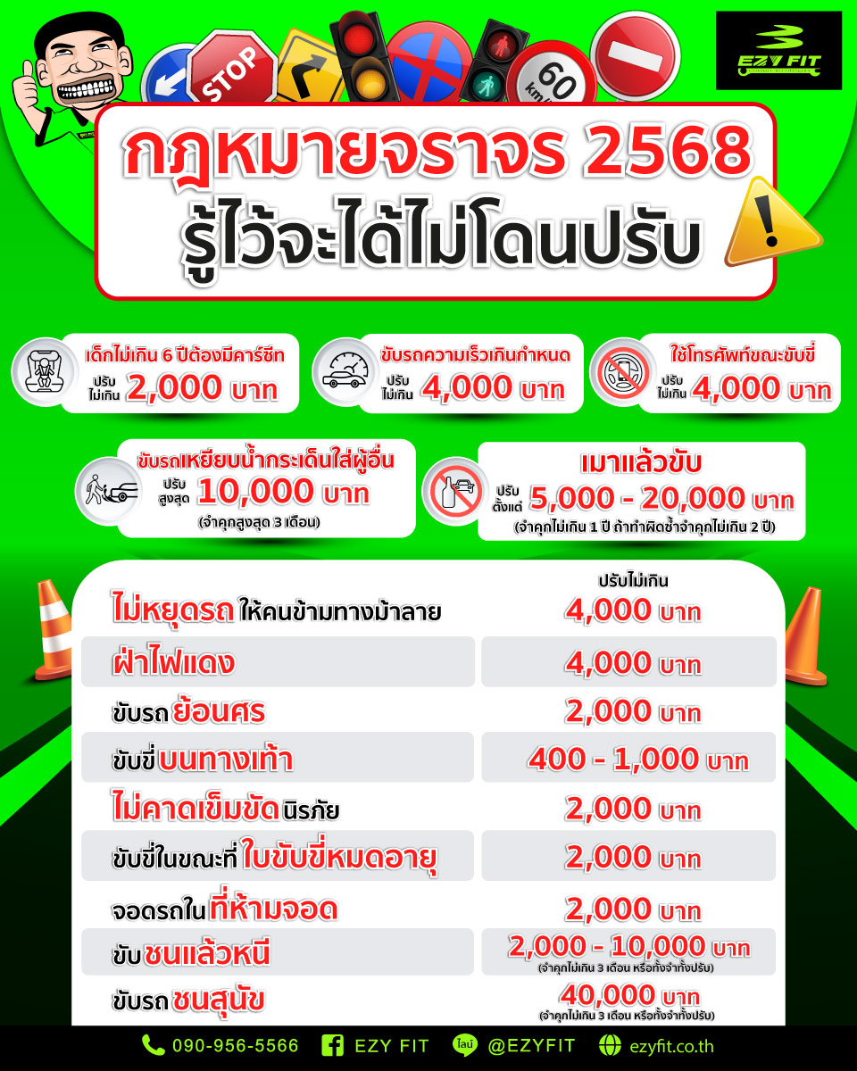 การขับขี่รถบนท้องถนนนอกจากจะคำนึงถึงเรื่องความปลอดภัยแล้วเราควรจะต้องเรียนรู้และปฎิบัติตามกฎหมายจราจร เพื่อหลีกเลี่ยงค่าปรับและได้รับโทษทางกฎหมาย