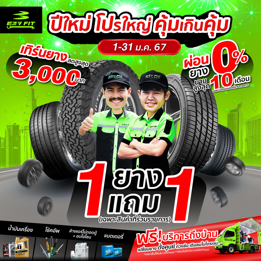 โปรโมชั่นเดือนมกราคม ปีใหม่โปรใหญ่ ส่วนลดเทิรน์ยางสูงสุด 3,000 บาท ซื้อยาง1แถม1 โปรโมชั่นผ่อนยาง 0% นานสูงสุด10เดือน