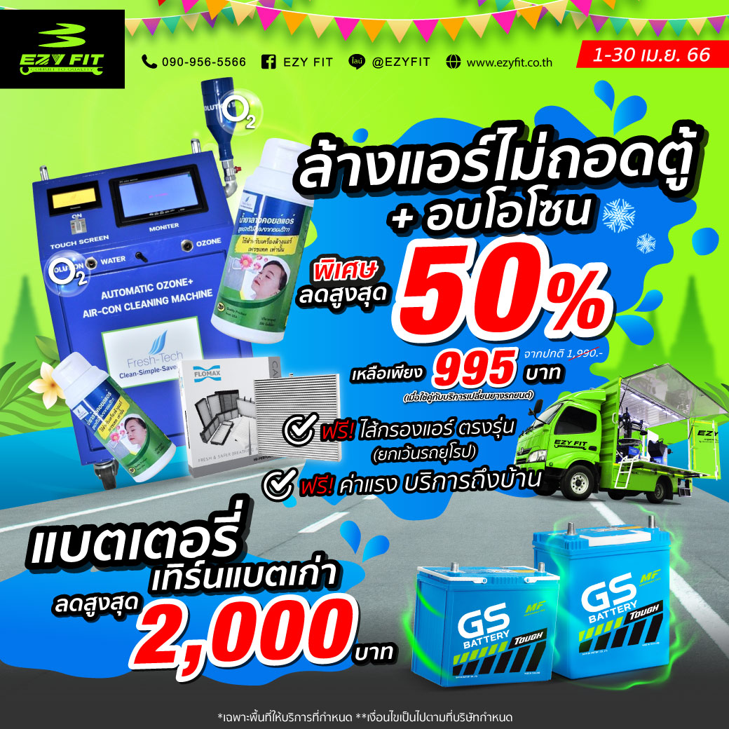 พิเศษ!! เมื่อใช้คู่กับบริการเปลี่ยนยาง ลดล้างแอร์ 50% เหลือ 995 บาท เท่านั้น