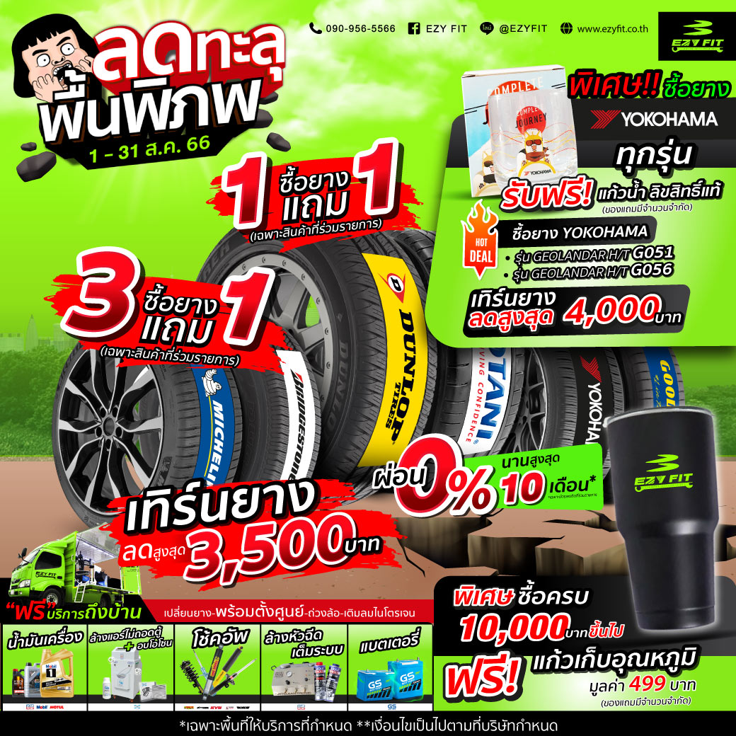 ฟรี!บริการถึงบ้านส่วนลดเทิร์นยางสูงสุด 3,500 บาท ซื้อครบ 10,000 บาทขึ้นไป ฟรี! แก้วเก็บอุณหภูมิ EZYFIT