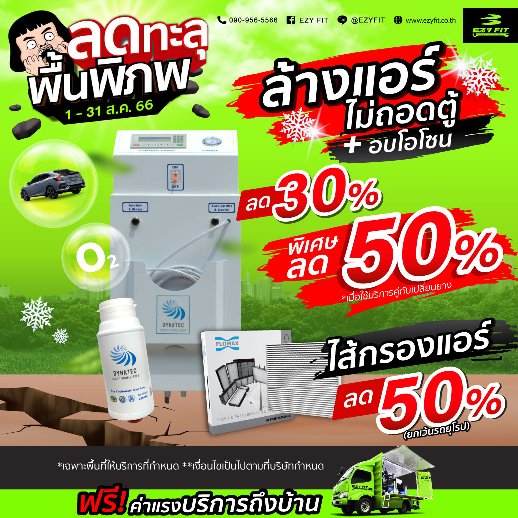 🚗 โปรล้างแอร์รถยนต์ ฟรี!! ไส้กรองแอร์ตรงรุ่น ล้างแอร์ไม่ถอดตู้ พร้อมอบโอโซนฆ่าเชื้อภายในรถยนต์ ด้วยผลิตภัณฑ์คุณภาพ DYNATEC มาตรฐานจากอเมริกา