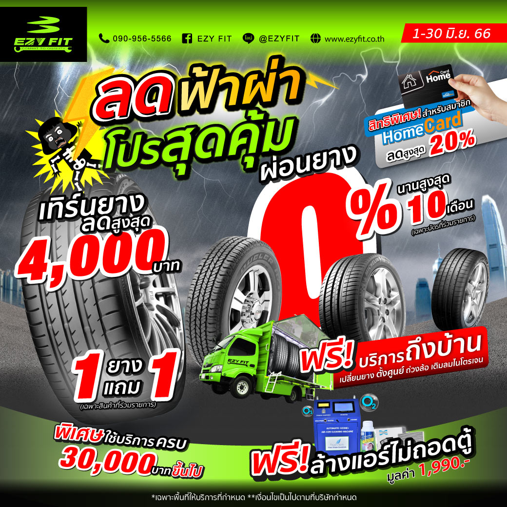 โปรโมชั่นผ่อนยางสูงสุด 0% 10 เดือน พร้อมส่วนลดเทิร์นยางสูงสุด 4,000 บาท ฟรีบริการถึงที่บ้าน