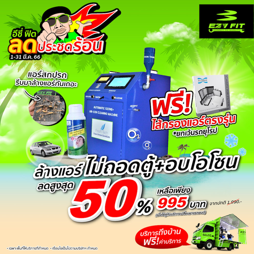 🚗 ฟรี!! ไส้กรองแอร์ตรงรุ่น ล้างแอร์ไม่ถอดตู้ พร้อมอบโอโซนฆ่าเชื้อภายในรถยนต์ ด้วยผลิตภัณฑ์คุณภาพ FRESH TECH มาตรฐานจากอเมริกา