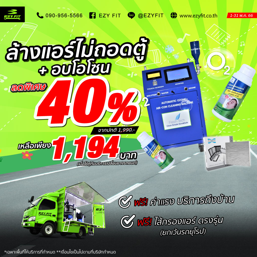 🚗 โปรล้างแอร์รถยนต์ ฟรี!! ไส้กรองแอร์ตรงรุ่น ล้างแอร์ไม่ถอดตู้ พร้อมอบโอโซนฆ่าเชื้อภายในรถยนต์ ด้วยผลิตภัณฑ์คุณภาพ FRESH TECH มาตรฐานจากอเมริกา