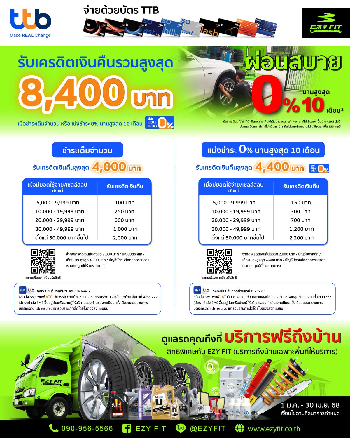 เมื่อซื้อสินค้าและบริการกับ EZYFIT และจ่ายด้วยบัตรเครดิต/บัตรกดเงินสด TTB เพียงมียอดใช้จ่ายเริ่มต้น 5,000 บาท l 1 ม.ค. - 30 เม.ย. 68