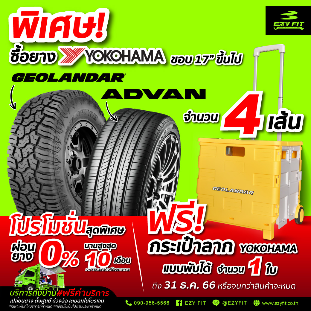 ❤ ฟรี! กระเป๋าลาก YOKOHAMA แบบพับได้ จำนวน 1 ใบ ระยะเวลา 31 ธ.ค. 66 หรือจนกว่าสินค้าจะหมด