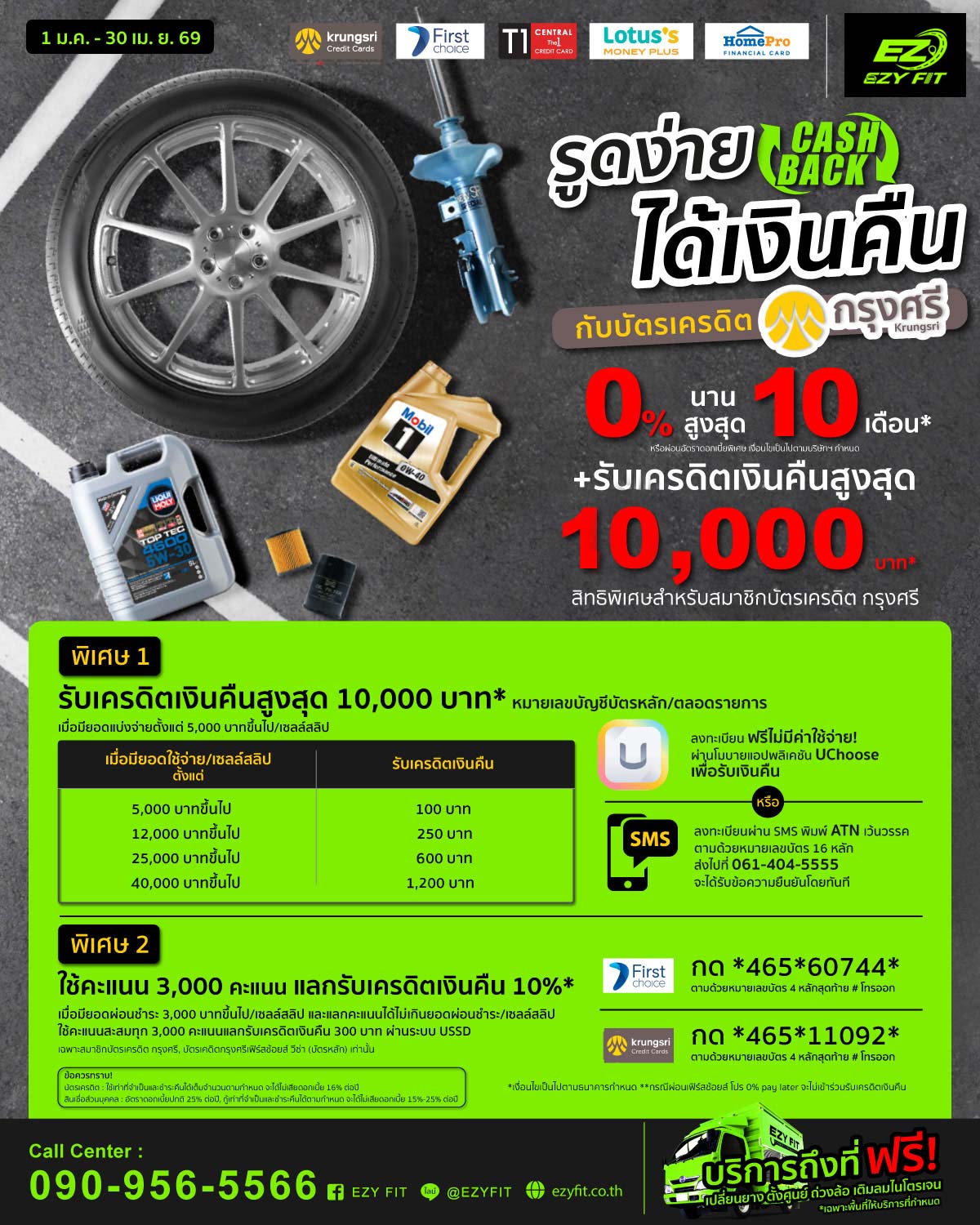 เมื่อซื้อสินค้าและบริการกับอีซี่ ฟิตโดยใช้จ่ายผ่านบัตรกรุงศรี รับสิทธิ์ผ่อนนานสูงสุด 10 เดือน และ แลกรับเครดิตเงินคืนสูงสุด 10,000 บาท l วันนี้ - 30 เมษายน 2569....