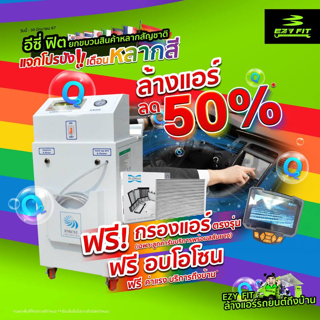 ล้างแอร์ไม่ถอดตู้ พร้อมอบโอโซนฆ่าเชื้อภายในรถยนต์ ด้วยผลิตภัณฑ์คุณภาพ DYNATEC มาตรฐานจากอเมริกา