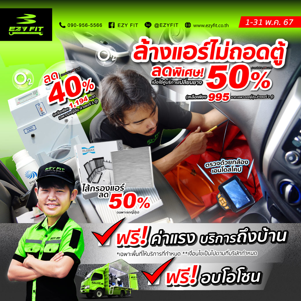 พิเศษ!! เมื่อใช้คู่กับบริการเปลี่ยนยาง ลดล้างแอร์ 50% เหลือ 995 บาท เท่านั้น